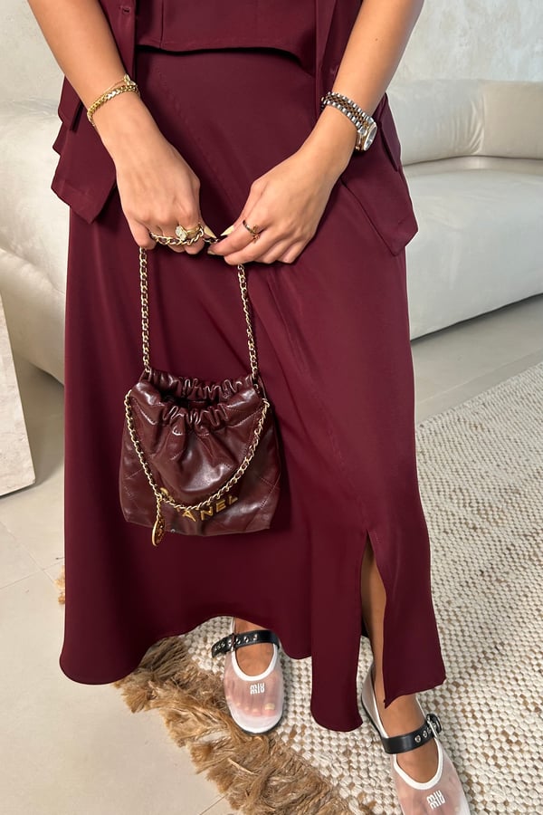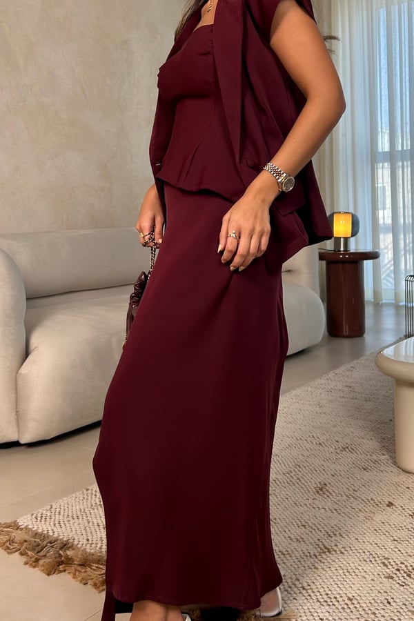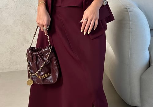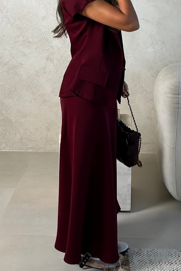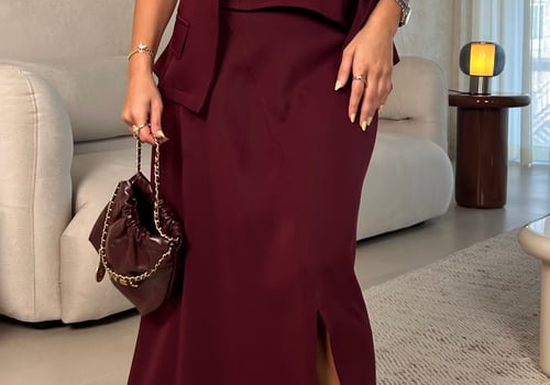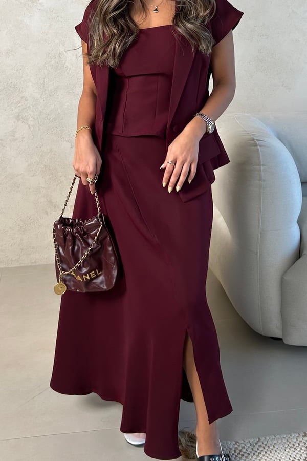 3 pieces set. A top, blazer, and a skirt. Skirt length can be adjusted. The model is wearing an XS size.