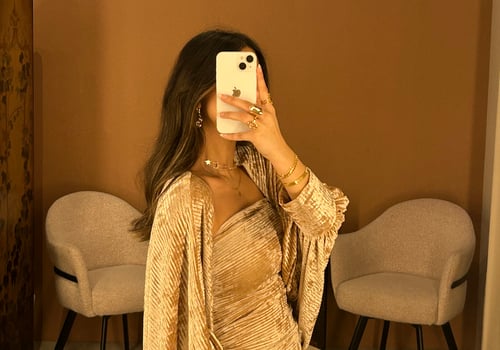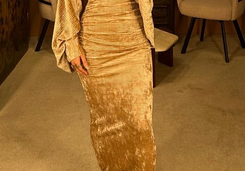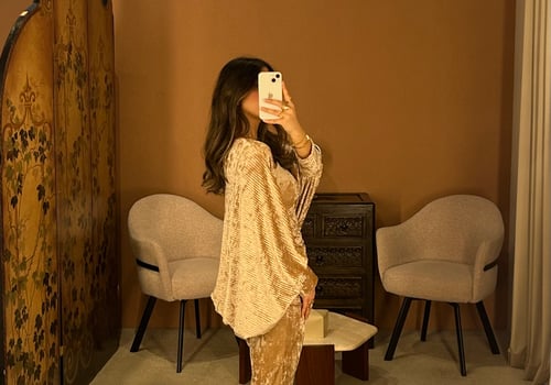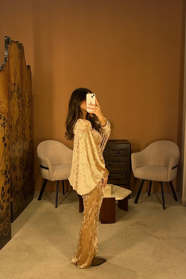 a metallic daraa. the model is wearing a...